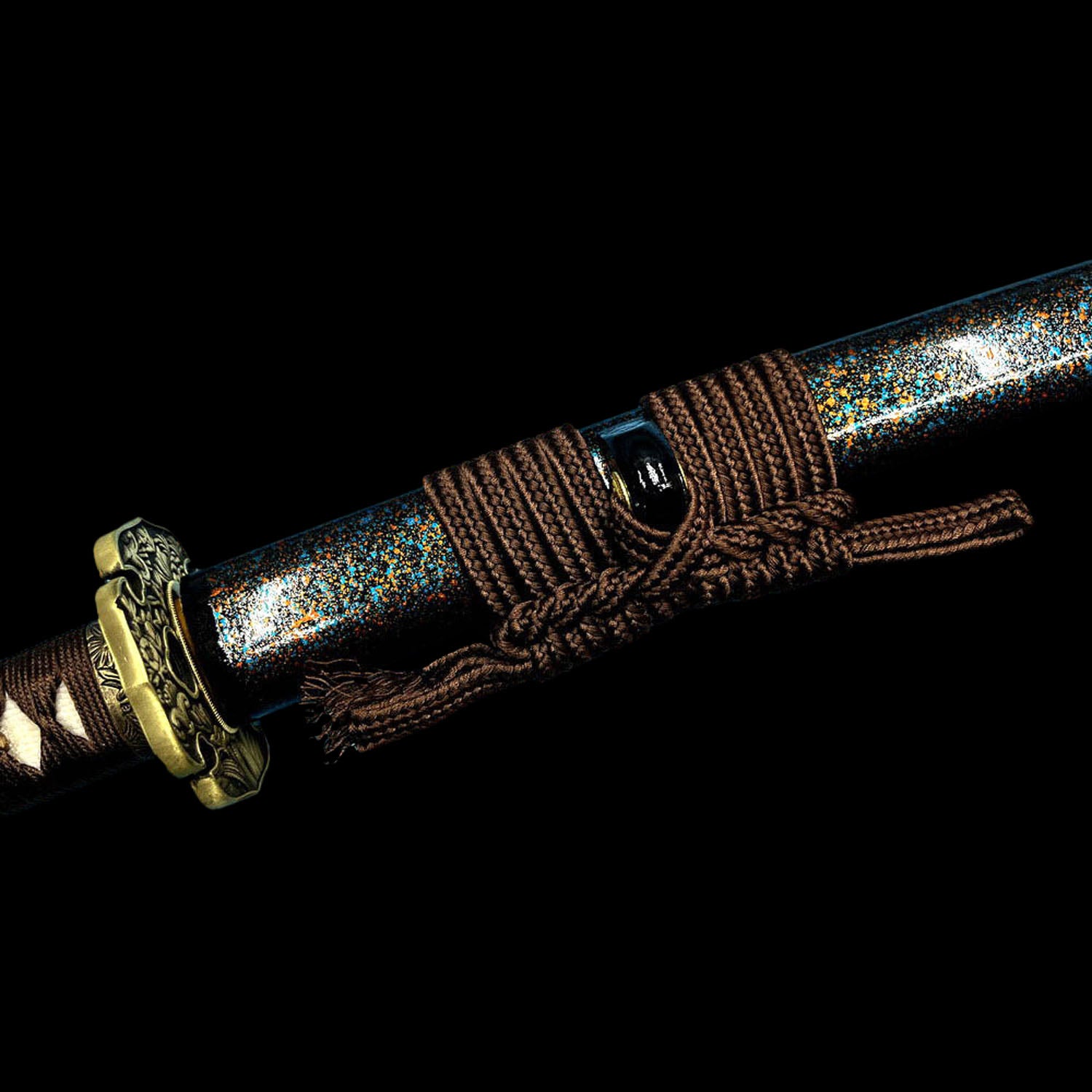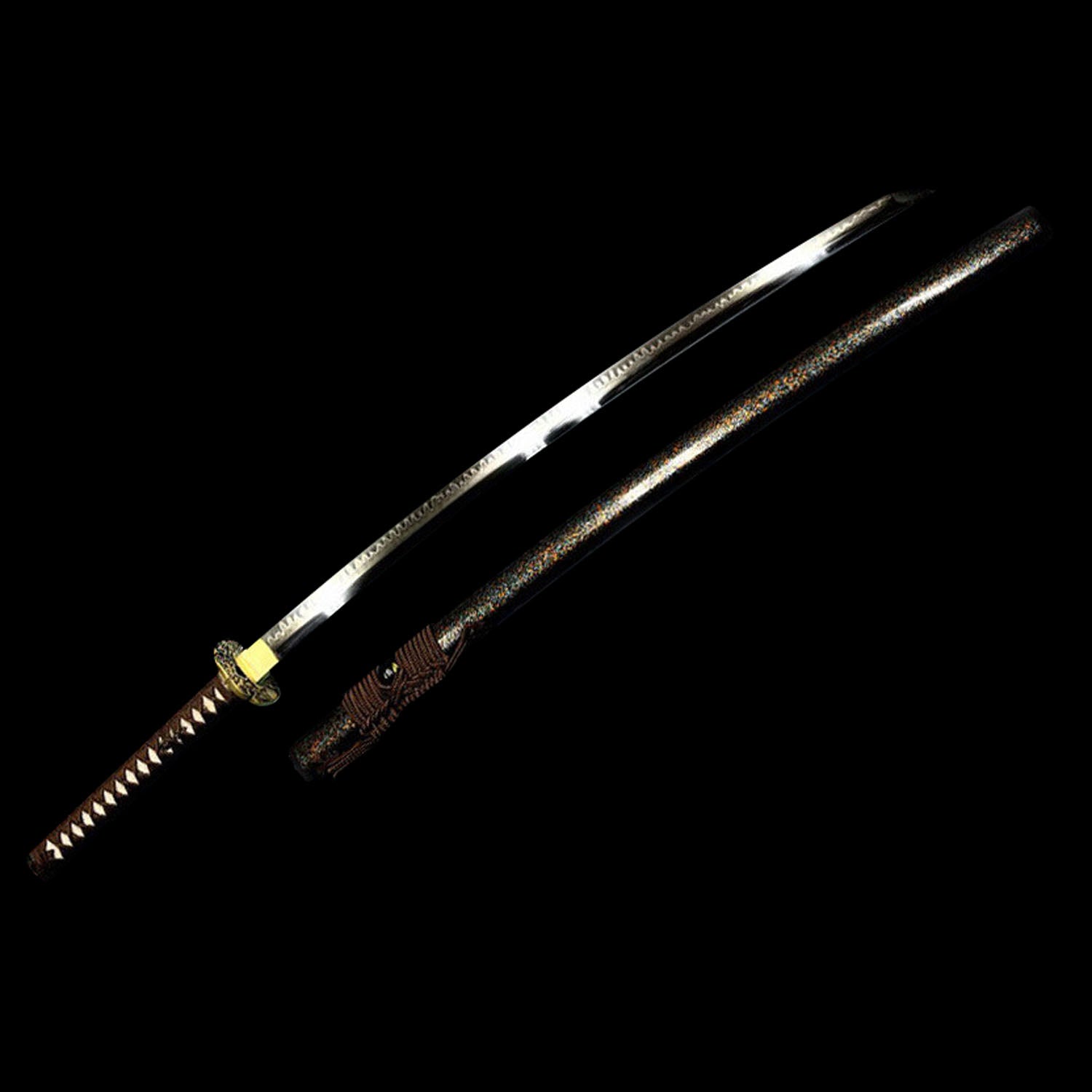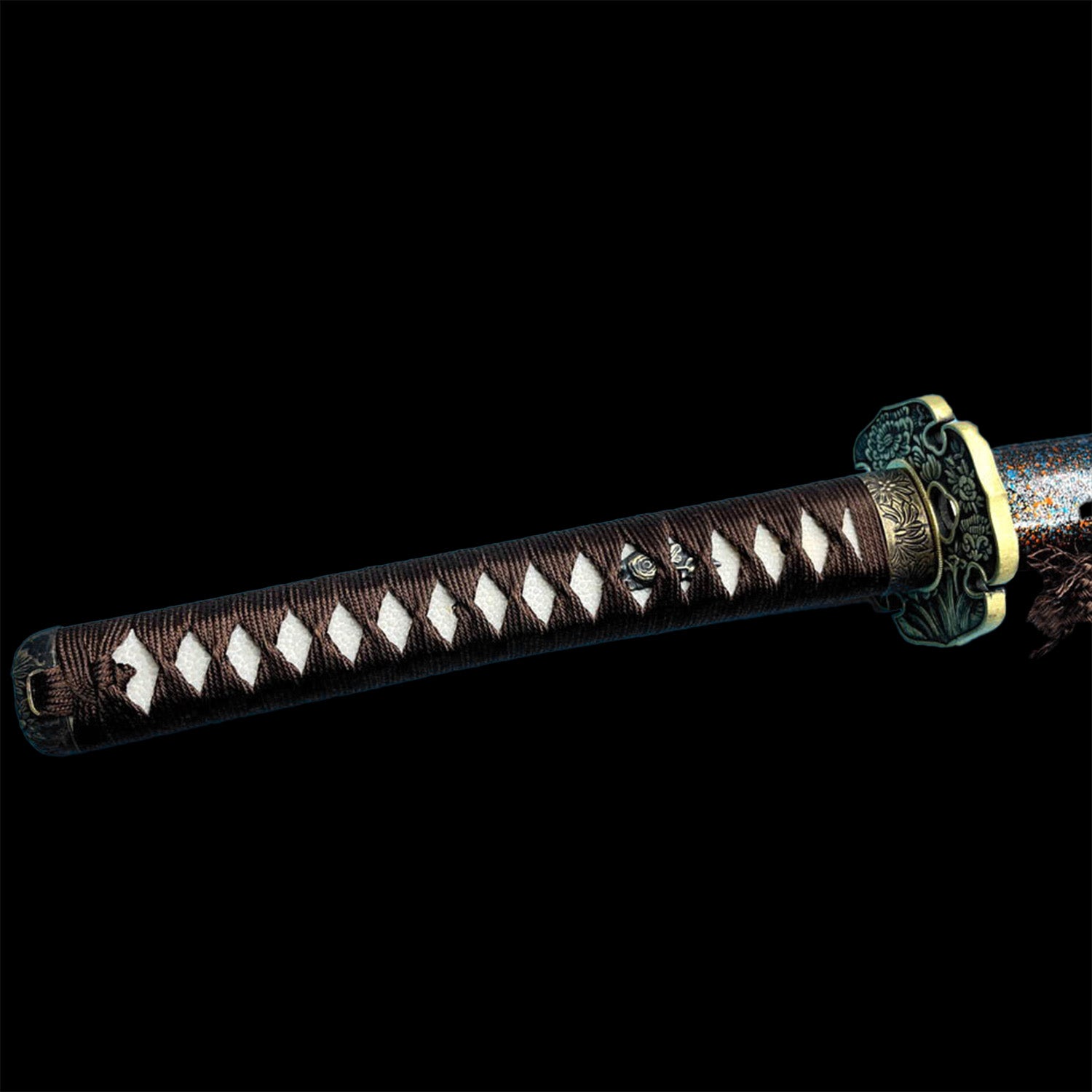 The fittings, including the guard, fuchi, kashira, and menuki, are crafted from quality cast brass.