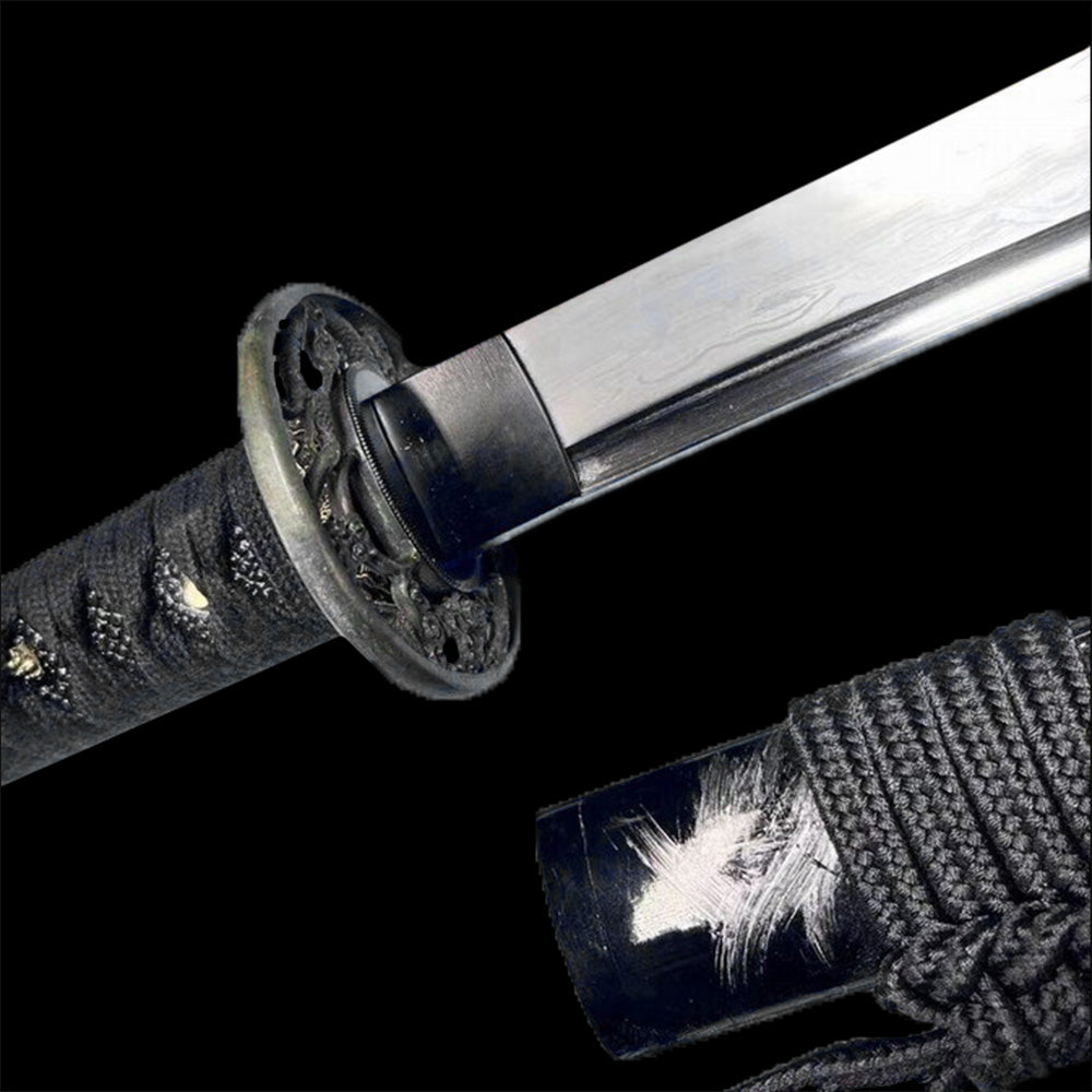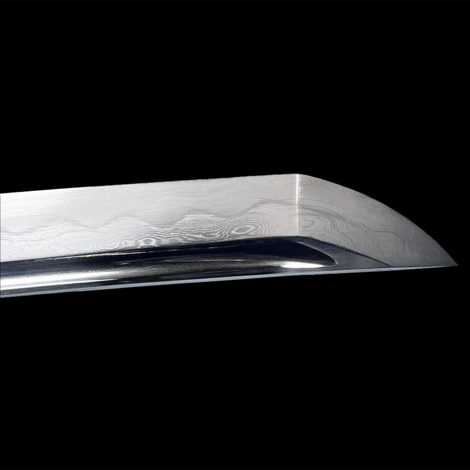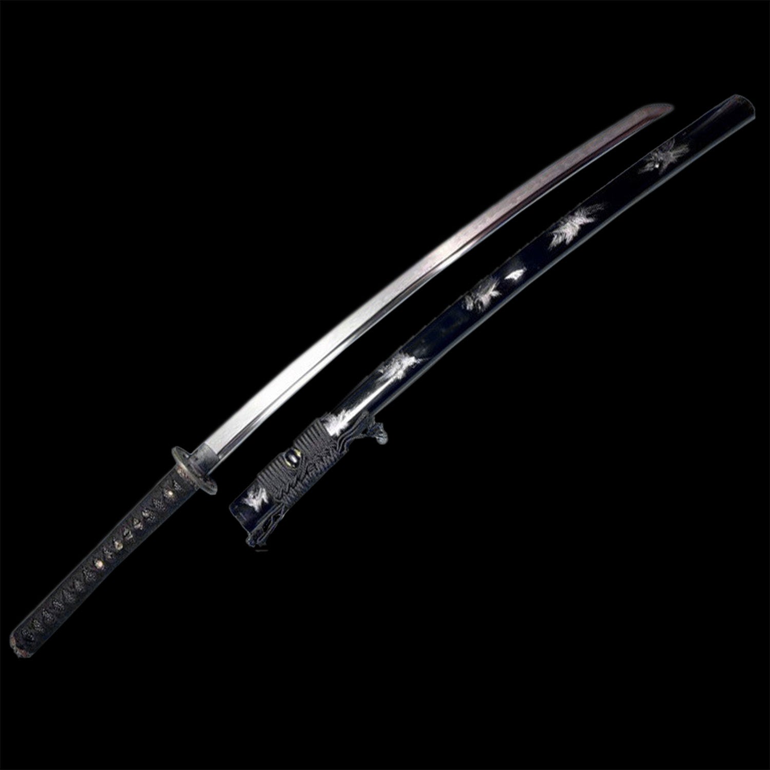 Tamahagane steel is prized for its exceptional toughness, sharpness, and ability to hold a keen edge. It also plays a crucial role in creating the distinct hamon, or temper line, on the blade during the heat-treating process. This katana is not just a weapon but a symbol of honor and craftsmanship.