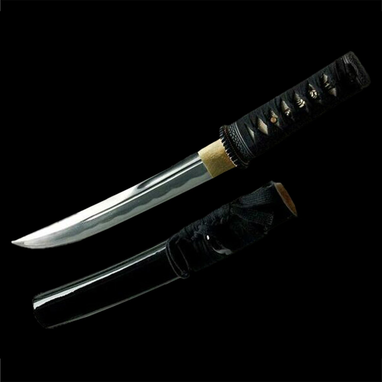 This expertly crafted tanto features a T10 steel blade forged in the traditional Kanmuri-Otoshi-zukuri style. The blade is clay-tempered, resulting in a beautiful, natural hamon, which is further highlighted by the full mirror-polish finish. Known for its durability and sharpness, this tanto is designed for both collectors and practitioners.