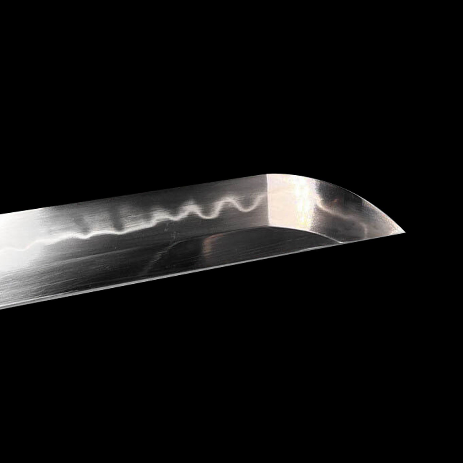 - The prominent temper line (hamon) showcases the skilled craftsmanship and adds to the blade’s aesthetic appeal.