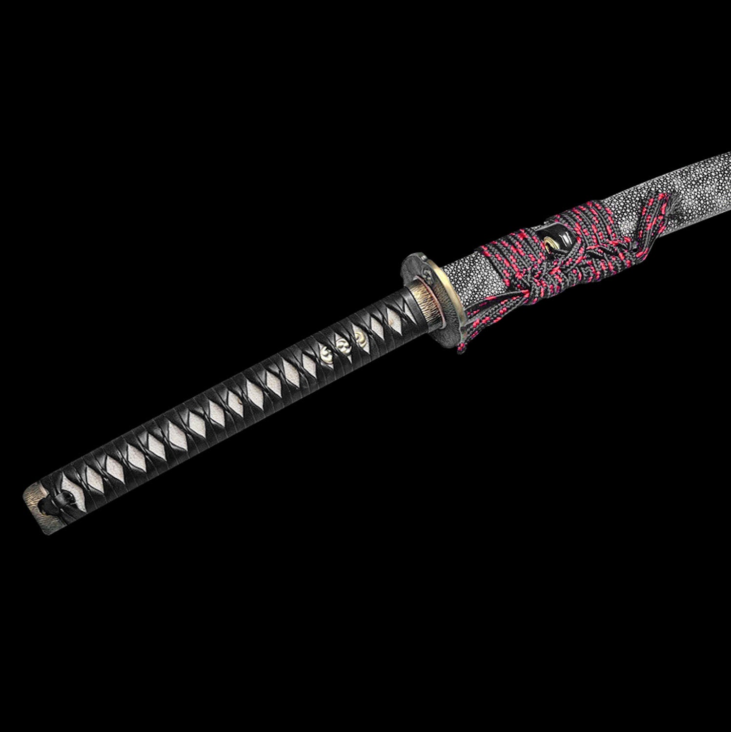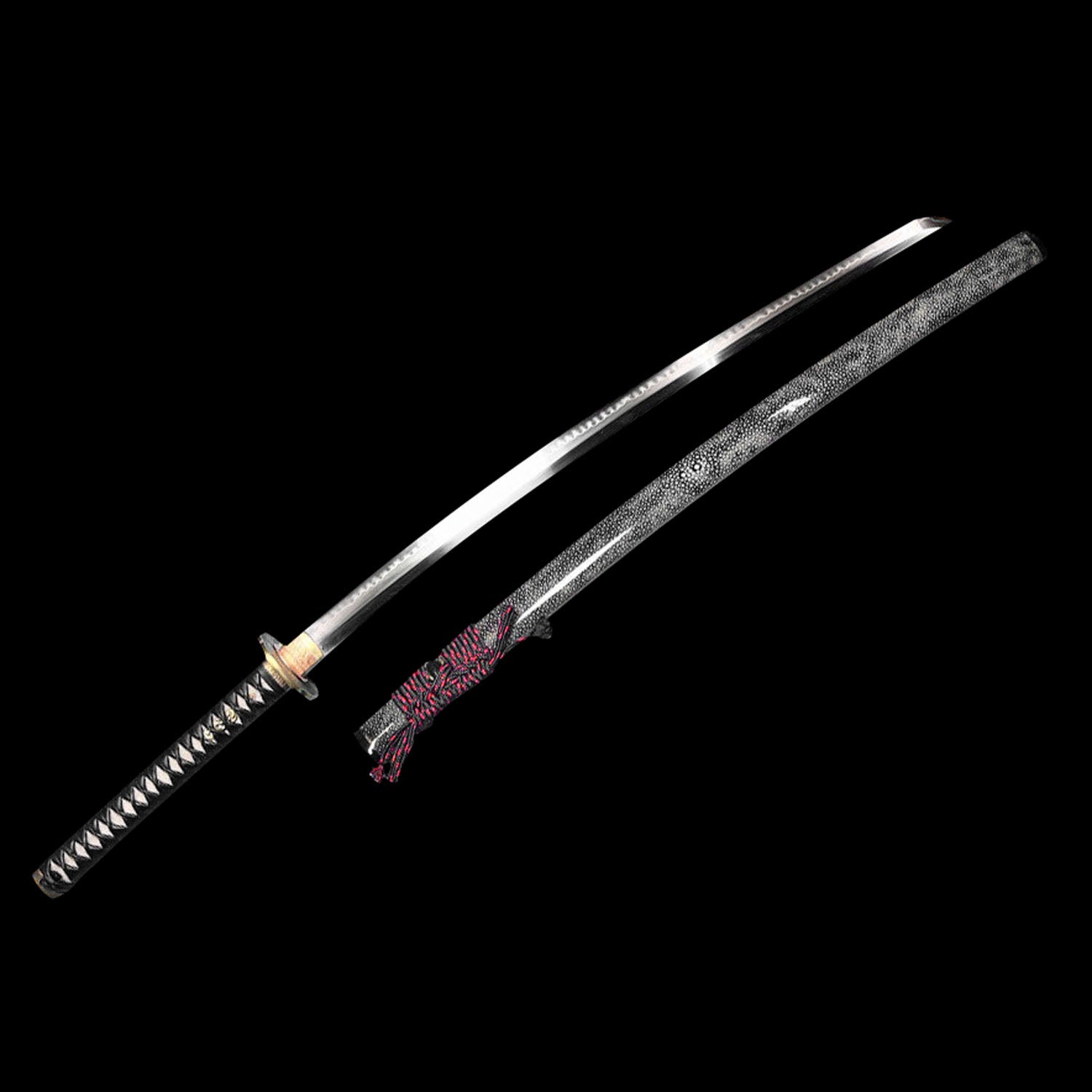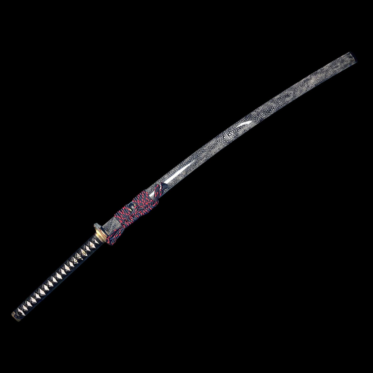 - The saya (scabbard) is fully wrapped in same and paired with a high-quality sageo, completing the katana’s refined appearance.