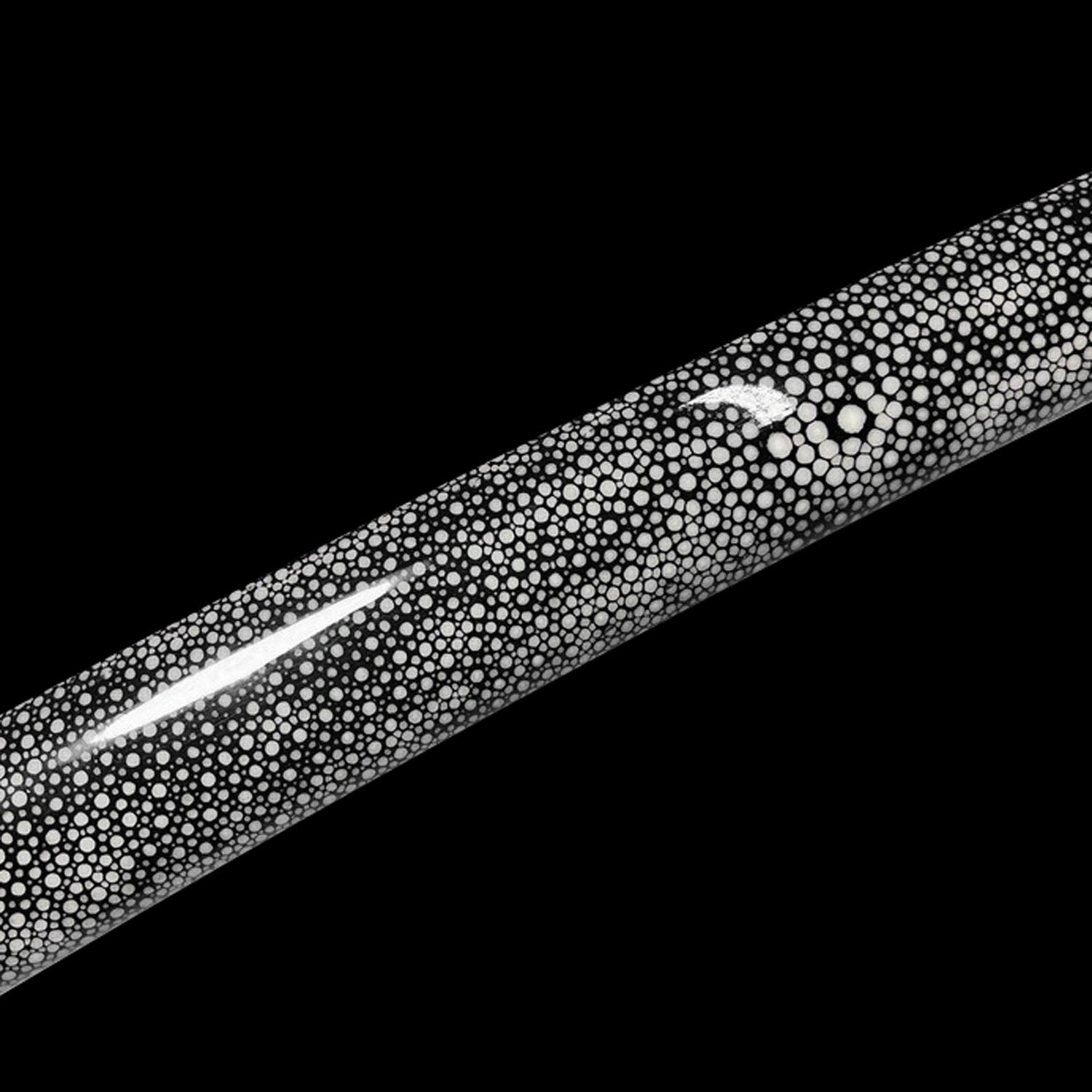 - The tsuka is wrapped in genuine same (rayskin) and finished with premium Japanese black genuine leather (silk option available) for a secure and comfortable grip.