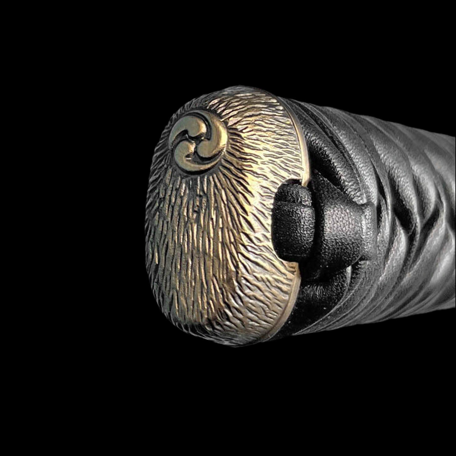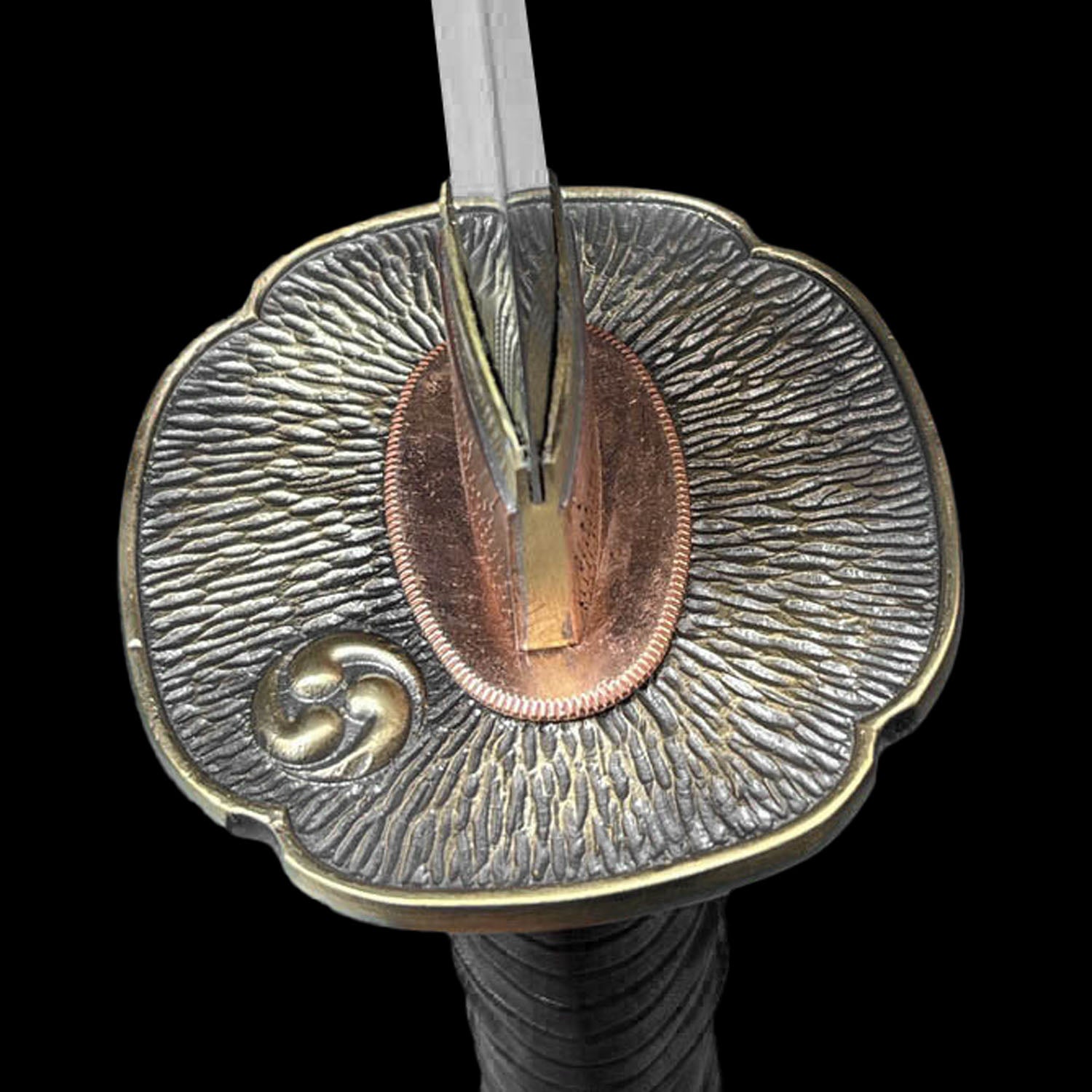 This stunning katana is inspired by the renowned Tomoe motif, a symbol of balance, power, and cosmic energy deeply rooted in Japanese culture. The tsuba, fuchi, and kashira are made from durable brass and adorned with the iconic Tomoe crest (mon), adding elegance and cultural significance to the design.